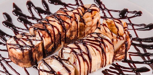 Блинчик, киви, банан, груша, ананас, сыр творожный, топпинг на выбор